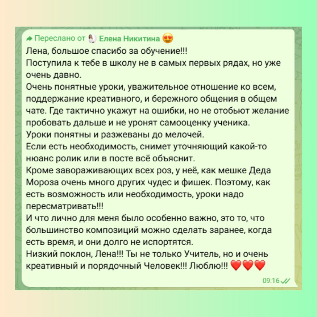 • Профессиональные фото всех композиций курса